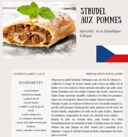- Des recettes de différents pays d’Europe ont été affichées dans la file d'attente de la cantine.